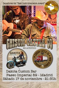 DetallesDakota Custom Bar, en paseo Imperial 89 de Madrid. Show en dúo acústico, entrada libre. Metro: Pirámides (Línea 5) – Cercanías: Pirámides (C1, C7 y C10).